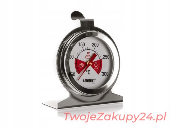 Termometr do potraw, mięs do piekarnika - marki Banquet Termometr do mięsa AKCENT to bardzo praktyczny pomocnik w kuchni. Termometr służy do kontroli temperatury potraw podczas pieczenia w piekarniku, nadaje się do zawieszenia i postawienia.