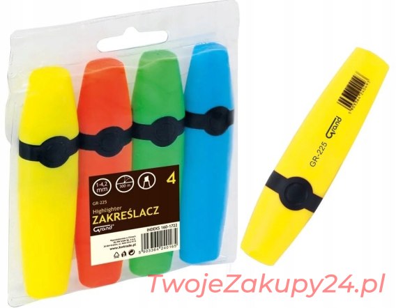 Zakreślacz Gr-225 4 Kolory Kpl. 4 Sztuki Grand