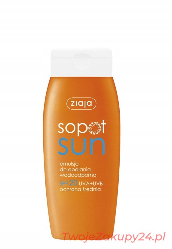 Ziaja sopot sun emulsja do opalania wodoodporna SPF 20 SPF 20 UVA+UVB ochrona średnia morska opalenizna Wodoodporna emulsja do twarzy i ciała.